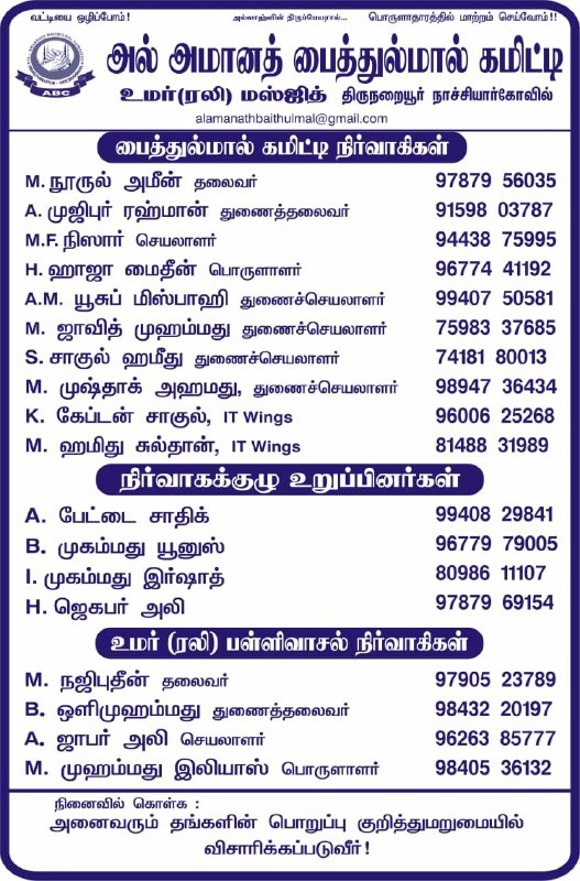 வேலை நாட்கள்: ஞாயிறு, செவ்வாய் மற்றும் வெள்ளி